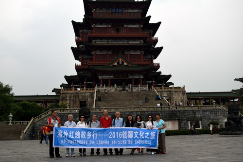 4日下午,来自8个不同国家的15位华校校董.校长抵达南昌并参观了江南三大名楼之一的滕王阁,凭栏赏赣江秀美风景,感受王勃《藤王阁序》中的“落霞与孤鹜齐飞,秋水共长天一色”,对江西地域文化有了一个初步全面的了解。