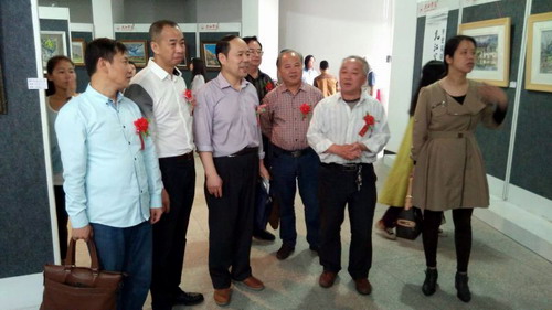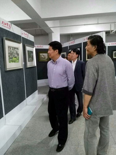 5月27日上午,由九江写生画会、九江学院艺术学院联合举办的,“守望家园”一一九江写生画会作品展暨写生画会作品集首发式,在逸夫图书馆展厅隆重开幕。校党委书记郑翔参观了展览。副校长纪岗昌,艺术学院党委书记王春生,副院长虞斌,市文联副主席段虹,市文联副主席、市美协主席宋跃林先生,市文联作家协会主席蔡勋先生,以及知名书画家崔廷瑶,徐东林,杨豹等老師和同学们600余人出席了开幕式,开幕仪式由艺术学院胡有源教授主持。