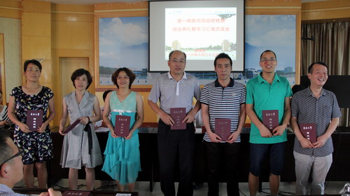 结业典礼上,与会领导为参训教师们颁发了结业证书。教师教学发展中心许礼生副主任对本期教师高级研修班的培训工作予以了总结,并对教师们返校后的继续学习提出了建议。马明亮处长也结合近期他在北京参加的学习培训,从“互联网使教育实现普及化、未来教师的多元化、手机是未来学习的主要工具,树立终身学习的观念”四个方面向在座教师简要地介绍了学习体会。王洪涛、任高飞、汪红梅、喻忠杰四位老师作为参训教师代表,分别从不同的角度汇报了在研修班中的学习体会。