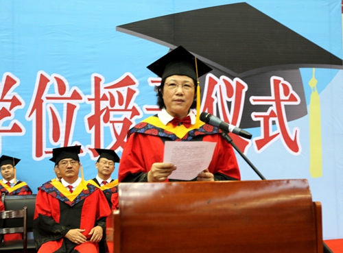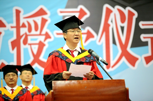 在典礼仪式上,副校长陶春元宣读了我校“2016届毕业生名单”;副校长杨焱林宣读了“关于授予5616名毕业生学士学位的决定”。我校2016届毕业生10712人,其中本科学生5520人,专科学生5192人。