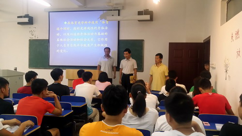 9月5日上午,校纪委书记魏立平来到八里湖校区检查新学期教学工作,魏书记在综合教学楼大厅查看了2016级新生报到现场,并仔细询问了新生报到情况,随后来到体育学院304教室,与同学们一起听取了武雪鹰博士为体育B1511班讲授的《体育史》课程,体育学院王勤院长和八里湖管理办主任段宝斌陪同听课。