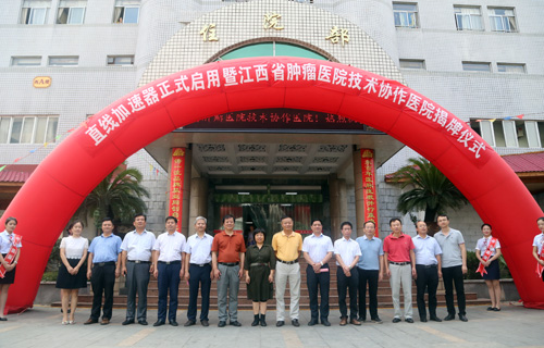 张志平院长在致辞中说,瑞典医科达三维粒子直线加速器的正式启用暨江西省肿瘤医院技术协作医院的揭牌,标志着临床医学院/附属医院肿瘤放射治疗的高起点和大跨越,也标志着临床医学院/附属医院与江西省肿瘤医院的全面技术合作进入一个新的更高水平。临床医学院/附属医院依托国际一流的医疗设备、教学医院强大的专业优势和省肿瘤医院全方位的技术支持,将实现恶性肿瘤手术、放疗、化疗、介入、分子靶向治疗无缝式紧密衔接,使得恶性肿瘤病人能在临床医学院/附属医院得到最优质、最合理化的多学科综合治疗。“这是我院肿瘤专科发展的一个新的里程碑,也为九江地区肿瘤学科的发展写上了浓墨重彩的一笔!”