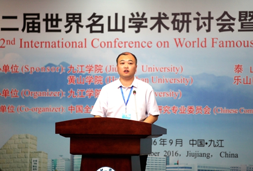 第二届世界名山学术研讨会暨高校公共外交论坛由九江学院、泰山学院、黄山学院、乐山师范学院主办,九江学院承办,中国全球传播与公共外交研究专业委员会协办。本届大会将围绕“经济全球化下的世界名山旅游发展和“一带一路”背景下的高校公共外交研究”这一主题开展广泛、深入的交流与合作。应邀出席本届大会的代表有:黄山学院党委书记汪枫,江西省人大环境与资源保护委员会副主任委员甘筱青,泰山学院副校长殷敏,黄山学院副校长胡善风,乐山师范学院校长代表杨悦,菲律宾圣名大学副校长那罗,菲律宾圣名大学副校长文森特,摩尔多瓦自由国际大学副校长克里斯蒂娜,以及来自澳大利亚、美国、巴西、伊朗、南非、德国、菲律宾、柬埔寨、日本、泰国、法国、罗马尼亚、摩尔多瓦等五大洲15个国家和地区世界名山所在地高校的专家学者,国内公共外交界的领导和学者。中国上海、浙江、广东、北京、湖北部分高校及相关科研机构专家、学者60余人也应邀参加大会。开幕式由九江学院党委书记郑翔主持。