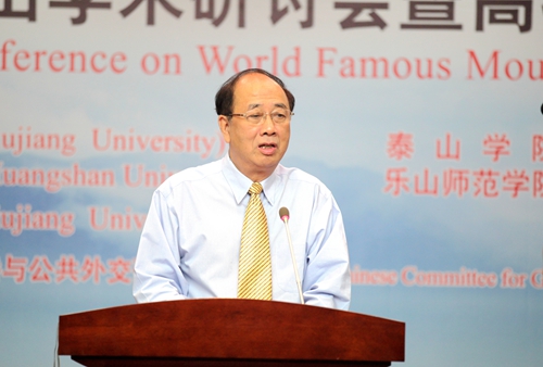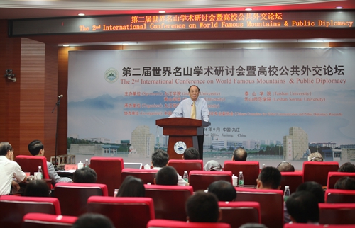 开幕式上,前国务院新闻办主任、十一届全国政协外事委员会主任、现任中国人民大学新闻学院院长赵启正对大会的胜利召开表示祝贺。他说,很高兴第二次参加世界名山学术研讨会暨高校公共外交论坛。今天参加会议的人这样的广泛,有这么多外国的朋友来,这么多中国高校的领导人来,还有这么多学者。涉及的题目有名山的建设、名山的旅游,还有高校的公共外交的发展。涉及到这么多内容,我希望能够用比较简单的语言来表达一下我对公共外交在中国发展一些希望以及对名山旅游业的希望。
