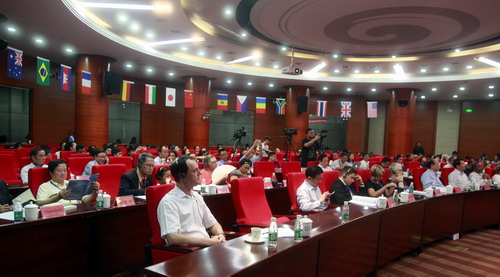 9月19日下午,会议围绕“公共外交”主题举行研讨会,九江学院思政部夏仕教授、柬埔寨王家研究院孔子学院外方院长谢莫尼勒阁下、华南理工大学国际教育学院院长安然教授、浙江大学传媒与国际文化学院院长吴飞教授、清华大学新闻与传播学院副院长周庆安教授、大连外国语大学文化传播学院院长张恒军教授、九江学院外国语学院周志高副教授、华中科技大学新闻与信息传播学院院长张昆教授、中国传媒大学媒介与公共事务研究院副院长郭晓科教授、武汉大学新闻与传播学院纪莉教授、上海外国语大学新闻传播学院吴瑛教授、中国人民大学公共外交研究院副院长雷蔚真教授,海外华人媒体协会副主席、香港流动媒体有限公司总经理王运丰,九江学院政法学院张晓明副教授、九江学院经管学院黎宇华讲师等15位专家学者作学术交流研讨。
