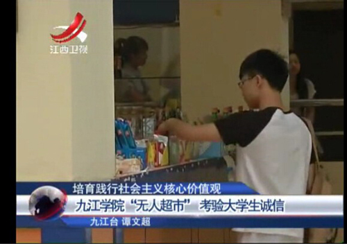 诚信之壤,厚植校园。在这片厚土之上,绽放了以“无人超市”为代表的系列诚信品牌之花。2012年9月,我校政法学院大三学生李至勋和同学利用学校给予的勤工俭学政策,在校图书馆一楼的勤工俭学服务点开起了一家“无人售货超市”。超市内商品有饮料、小吃和文具用品等,师生在选购商品后,只需按照价签直接将钱放入“收银盒”内,也可以自助找零;在找不开零钱或者没带钱的情况下,师生还可以赊欠。此事被中央电视台新闻频道和《人民日报》等数十家电子和纸质媒体纷纷转载和评论,赞誉满满。