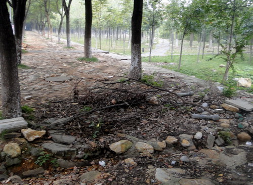在渊明大道靠近室内田径馆一侧,发现部分用于拦截摩托车通行的石球路障被搬动,起不到拦截摩托车的作用。杨副校长要求保卫处采取措施,将石球路障深埋,同时加密,从而有效拦截摩托车从中通过。