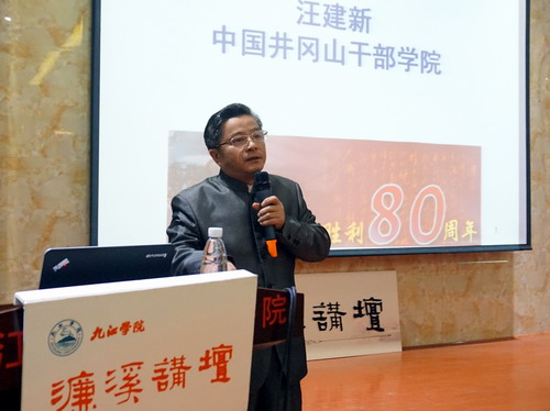 10月15日晚,中国井冈山干部学院副院长汪建新教授做客我校第149期濂溪讲坛,在香远楼三楼报告厅为我校师生带来了题为“从毛泽东诗词感悟长征”的精彩讲座。副校长纪岗昌、王万山与500余名师生们一起聆听了讲座。讲座由副校长杨耀防主持。