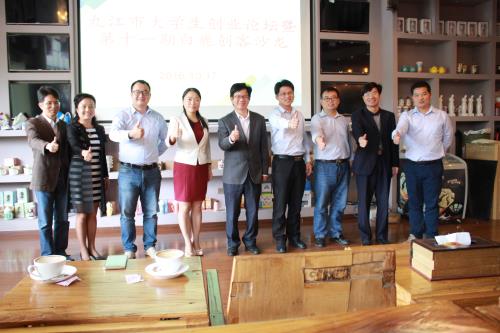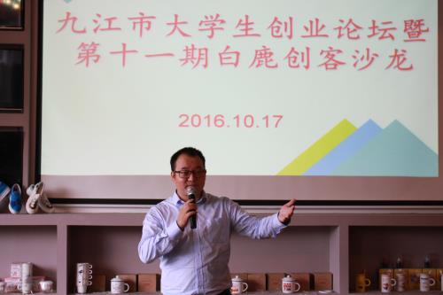 为响应国家和省市大众创业万众创新活动周,10月17日,九江市大学生创业论坛暨第十一期白鹿创客沙龙活动在学校大学科技园靠谱青年创客咖啡举行。活动由共青团九江市委员会和学校大学科技园、校团委、校友办联合举办。活动邀请九江学院优秀校友、九江微盟信息技术有限公司创始人王堃做了“浅淡移动互联网经济及大数据应用”的主题报告。活动由文传学院播音与主持专业A1552班魏依萍、赵鑫铭同学主持。