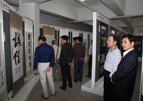 据罗龙炎老师介绍,金秋书画摄影艺术展,是我校教职工精心培育的一朵文化艺术之花。所展作品,都是我校教职工的精心创作,皆源于我校教职工普通而丰富的生活,具有浓厚的生活气息和美感,是广大教职工辛勤劳作和审美感悟的结晶。我校教职工书画摄影展自2010年首展以来,经过六年的不懈努力,视野和水平都得到了不断的扩展和提高,历届展出,无不以其丰富内涵与绰约风姿给广大师生留下了深刻而美好的印象。从而为丰富校园文化生活、促进师生艺术素质的提升,贡献了一份光热。
