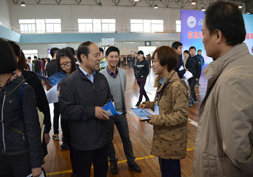 为给广大毕业生搭建更好的就业和择业平台,10月30日上午,信息学院在南区体育馆召开了2017届毕业生就业洽谈会。副校长纪岗昌、招生与就业处、校友办等领导先后来到就业洽谈会现场,并在信息学院党政领导的陪同下看望了应届毕业生和用人单位代表。