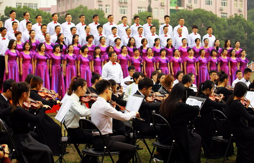 “千人共唱长征组歌巡回演出”是该校系列活动的重要内容。历时近半年的精心组织排练,1000多名师生通过交响乐、合唱、独唱、朗诵、舞蹈等多种表演艺术形式,表演了《长征组歌》等10个经典曲目,颂扬了中国革命史中具有传奇色彩的两万五千里长征,展现出中华儿女一往无前的英雄气概、战无不胜的坚强力量和真挚浓烈的爱国情怀。系列活动还包括“继承长征精神校园健身跑”“纪念红军长征胜利80周年专题讲座”“纪念红军长征胜利80周年书画摄影展”和“纪念红军长征胜利80周年征文”等。