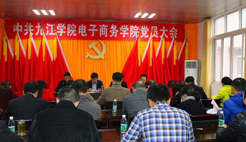 11月16日下午,中共九江学院电子商务学院党员大会在竞秀楼508隆重召开。校党委委员、副校长夏启国同志出席会议并讲话,校党委组织部副部长金葆金同志出席会议,电商学院党全体党员参加了会议。大会由电商学院院长郑祚双同志主持。