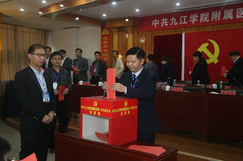 11月19日下午,党代会举行全体会议,经过充分酝酿,按照无记名投票差额选举办法,与会代表郑重地填写了选票,经过计票人、监票人认真统计,选举产生了中共九江学院附属医院新一届党委委员:张南华、张志平、李春平、谷翔、贾宗林、刘英明、胡志坚;中共九江学院附属医院新一届纪委委员:刘英明、宛赤军、夏莉娜、但传军、罗丹、盛传玲、欧阳卫泽。