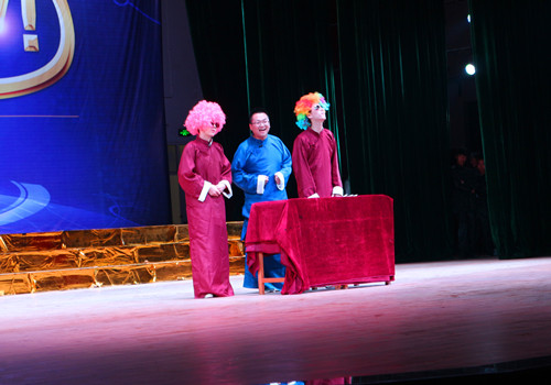 晚会在热情的开场曲拉开序幕。随着音乐与歌声的传动,带动了观众的热情,与此同时,微信上墙让同学们感受不一样的晚会,实时微信让同学们为自己喜爱演员助威。