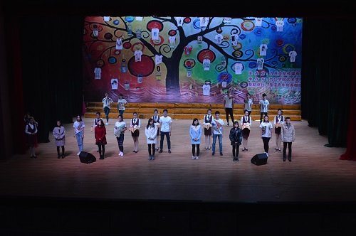 晚会在燧人乐队的演奏中拉开帷幕。晚会既有歌舞表演,也有相声、话剧,还有器乐二重奏,既给人听觉的享受,又是视觉的享受。在优美的歌声,美妙的舞姿中,模特们穿着选手们的手绘设计获奖作品——T恤一一登场展示,赢得台下阵阵掌声和欢呼声。
