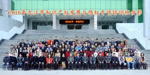 开班仪式上,政法学院副院长、江西省知识产权培训(九江)基地负责人曹钟安宣读了本期培训班的课程安排与纪律要求。仪式结束后,参加培训的领导与学员一起在逸夫图书馆门口合影留念。