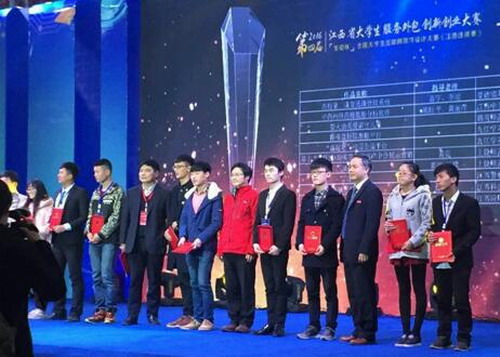 “益起吧校园公益平台”获得大赛一等奖,获得1000元的创业基金奖励,“考务信息发布查询平台”以及“家托宝”托管资讯O2O平台项目团队分获大赛二等奖。 “翼速驾”一站式学车驾考平台、“好评”掌上评分小助手、“地铁购票通”以及“大学生创业资讯服务平台”分获三等奖。特等奖项目的指导老师闵娟娟老师被评为“优秀指导老师”的光荣称号。继第三届江西省大学生服务外包创新创业大赛后再创辉煌,为信息学院争光,更为九江学院添彩。
