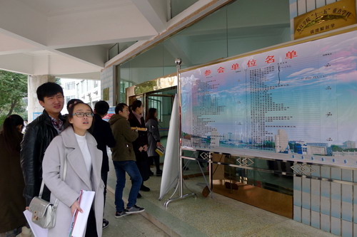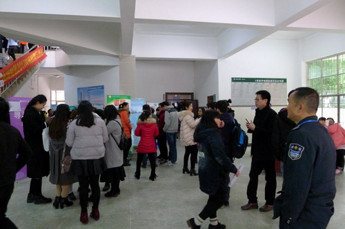招聘会上,浙江湖州吴兴区卫计局、人事局组织了17家医院和卫生机构前来招聘,带来了100多个就业岗位,达到了预期效果。同学们一个个充满自信的拿着个人简历,选择自己适合的用人单位,他(她)们着装整齐、举止大方,充分展示了九江学院学子良好的精神风貌,个个都争取把自己最优秀的一面呈现给各用人单位;各用人单位也争先恐后以展板、解说等形式让同学们了解他们,以便能优先选择他们。此次“双选会”,得到了学校大力支持,校领导亲临会场指导,并与多家用人单位和部分应聘毕业生进行了交流。