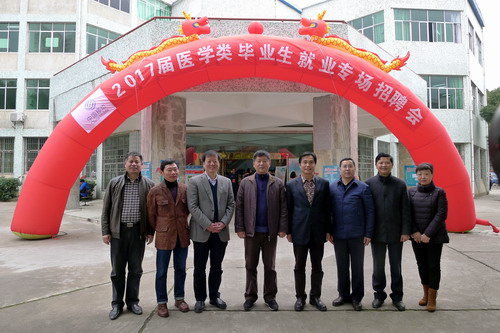 12月18日,我校2017届医学类毕业生就业洽谈会在庐峰校区举行。为了更好地做好医学类毕业生的就业工作,副校长杨耀防、夏启国,招生就业处处长肖国丰,医学部主任许礼生、副主任向维聂,临床医学院院长张志平、党委书记张南华、副院长贾宗林,护理学院党委书记丁蓉,亲临招聘会场,了解招聘情况,指导毕业生就业工作。