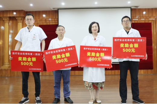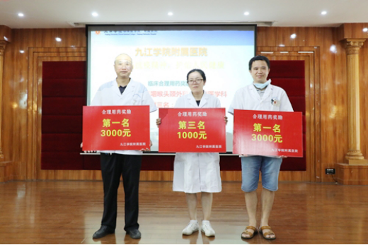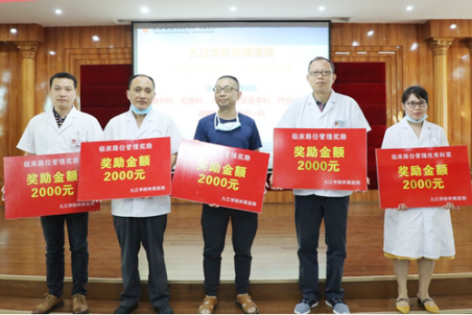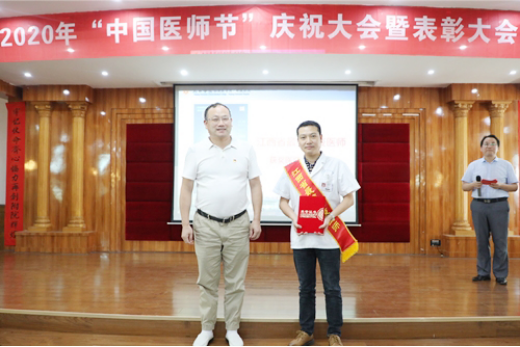 胡志坚宣读了《九江学院附属医院“第三届中国医师节”获奖及表彰的通知》。结合医师节主题与医院临床工作指标,本次共设置医疗安全优秀科室奖、临床合理用药奖、临床路径管理奖等,共27个临床医技科室荣获集体奖;评选出优秀医师奖、合理用药优秀医师奖、病案首页填写质量奖、医师“猫头鹰”奖、“三派三服务” 优秀工作者奖等,共计146人。大会还为荣获“江西省最美抗疫医师”称号的呼吸一科童建林主任颁发了获奖证书。