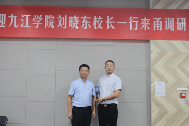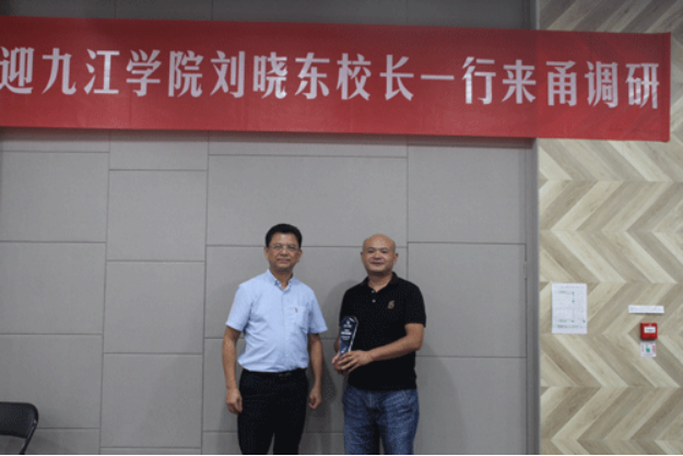 最后,刘晓东、夏启国分别为获得九江学院2019年“校友贡献奖”的校友宋长佑、杜朝明和巴友明颁奖。