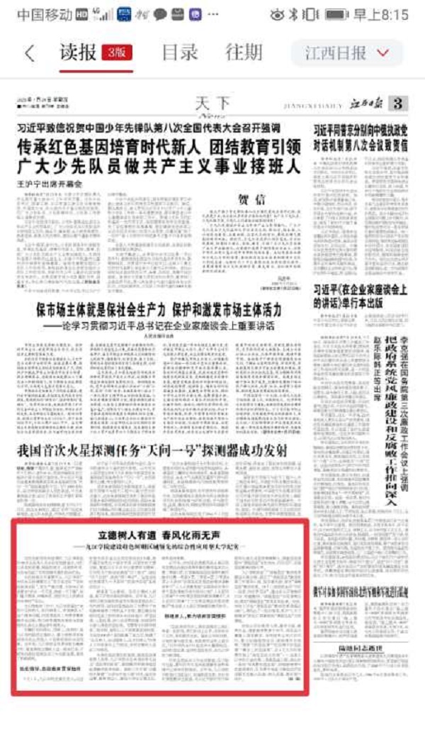 江西日报:服务经济社会发展引领学科专业建设——九江学院建设特色鲜明区域领先的综合性应用型大学纪实(二)https://www.jju.edu.cn/info/1047/77064.htm