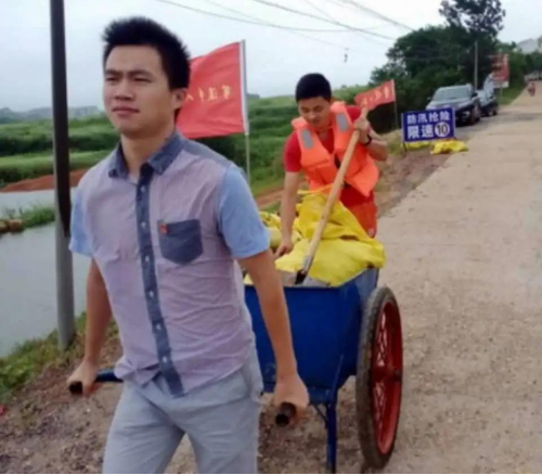 7月10日,家住都昌万户镇的旅游与地理学院的江亲龙同学在得知家乡的汛情之后,第一时间联系村主任要求到一线参加抗洪抢险工作。