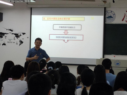 课堂交流氛围热烈有序。柯元教授授课的主要内容是“新民主主义革命理论形成的依据”。柯教授通过对比教学法,结合历史与现实中的具体实例详细地阐述了鸦片战争前后中国社会所发生的深刻历史变化,深入浅出地介绍了近代中国半殖民地半封建社会的历史由来与具体特征。同学们积极主动地参与了课堂互动。听课过程中,刘晓东时刻关注班级同学的学习状态并认真做好记录。