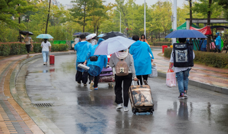 持续的阴雨天气虽给报到工作带来了不便,却降低不了迎新工作的热情。为了做好疫情防控常态化形势下的新生报到工作,学校要求既要严格落实疫情防控工作相关要求,又要做到热情服务、细致周到。学生处处长刘平介绍说:“为了做好这次迎新工作,从迎新期间校园内的疫情防控、交通路线设置、车辆管理、雨天雨衣发放、家长等候孩子报到过程中的安置等等,学校都作了周密的安排。新生在九江火车站、汽车站门口将由志愿者引导乘坐校车到达学校,报到全程都有志愿者进行协调帮助。”