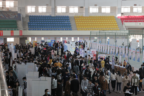 11月14日上午,江西省2021届普通高校毕业生系列专场就业招聘会九江区域高校毕业生专场招聘会在我校主校区田径馆成功举办。本次招聘会申请参会企业达到829家,经过审核,420家企业获得了参会资格。其中,国有企业、事业单位约100家,世界500强企业32家,中国500强企业33家,上市企业53家,民企500强20家,行业500强63家;提供招聘需求达到24000余人,五险覆盖率达到94%。