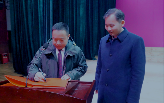 讲座结束后,时煌军与同学们进行了互动,回答了同学们的问题,向学校赠送了进博会标识模型。他还欣然为濂溪讲坛题辞:新时代,共享未来。