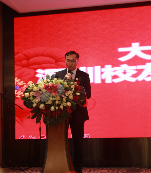 深圳校友会会长罗建成代表深圳校友会理事会发表讲话。他介绍了过去两年校友会充分发挥校友积极性、创造性展开的一系列服务校友的工作情况,希望深圳校友要不忘初心,回馈母校,回报社会,为全面建成小康社会添砖加瓦,共迎美好明天。