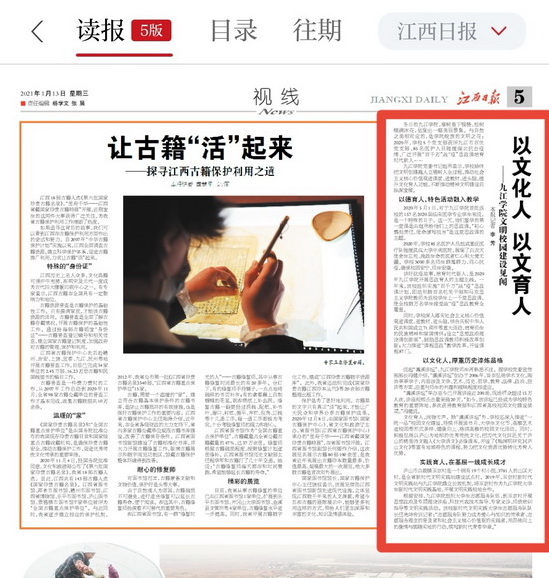 江西日报:以文化人 以文育人——九江学院文明校园建设见闻