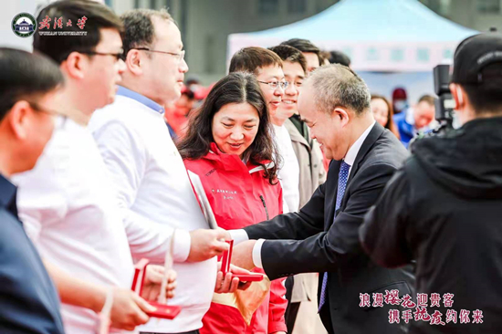 从酒店到武汉大学赏樱的路上,依旧是警车开道、市民驻足招手,医护代表一路唱着《我和我的祖国》、《小白杨》,饱含深情地表达着对这片土地深沉的爱和白衣执甲的无怨无悔。武汉大学精心遴选出1500余名在校师生,为医护人员提供全程志愿者专属服务,除了送上富有武汉特色的抗疫勋章,还特别给医护人员“送上一朵小红花”。