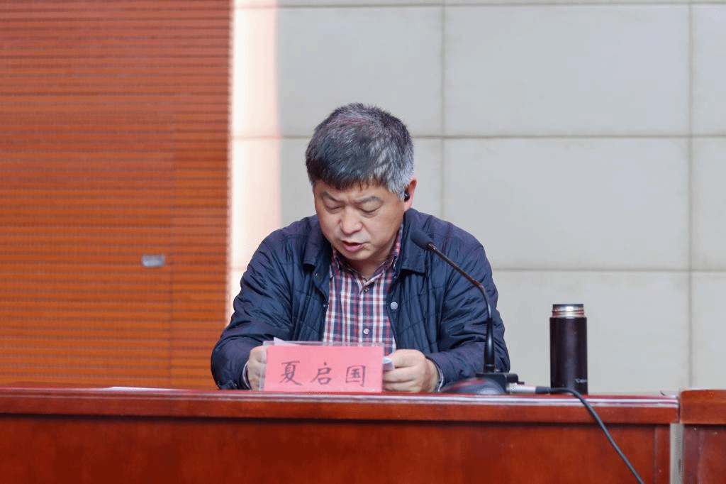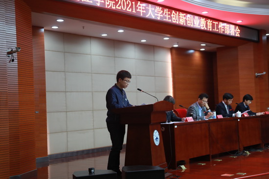 夏启国在会上宣读了《九江学院关于进一步深化和推进大学生创新创业教育工作的实施办法》。