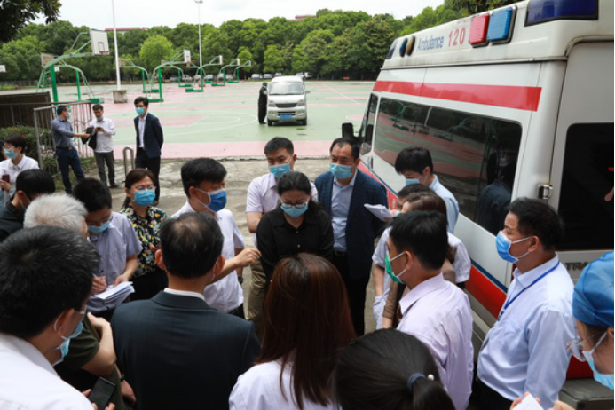 5月22日中午,国家卫健委职业卫生中心副主任徐克明率国务院联防联控机制江西工作组一行4人来我校检查指导新冠病毒疫苗接种工作。省卫健委党组成员、副主任钭方芳,省卫健委血地处处长谢建文,省第二指导组组长、省交通运输厅二级巡视员彭瑜,副组长、省卫健委规划发展与信息化处二级调研员陈华新,九江市政府副市长李军,市政府副秘书长黄效兵,市卫健委主任周泽甫,市卫健委副主任孙勇军等陪同检查。我校党委书记赵伟,副校长杨耀防热情接待了工作组一行。