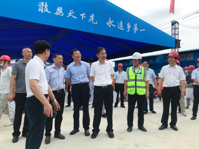 6月16日上午,2021年江西省建筑施工安全生产标准化示范工地观摩会暨“安全生产宣传咨询日”活动启动仪式在我校第二附属医院建设项目工地现场举行。江西省城镇发展服务中心党委书记梁卫明、九江市副市长孙金淼、我校党委书记赵伟、濂溪区区长盛炜、市住建局局长罗百奚等领导应邀出席仪式。