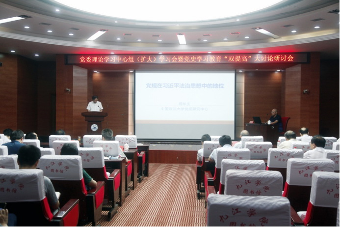 会上,我校优秀校友,中国政法大学党规研究中心主任、博士生导师柯华庆教授作了题为《党规在习近平法治思想中的地位》辅导报告。报告中,柯华庆从党规重要、党规为什么重要、党规如何重要、新时代到底要干什么四个方面,就党规在习近平法治思想中的重要地位进行了系统全面的宣讲和学习辅导。报告内容丰富,重点突出,条理清晰,解读全面,对我校深入学习领会和贯彻落实习近平法治思想具有很强的指导性。
