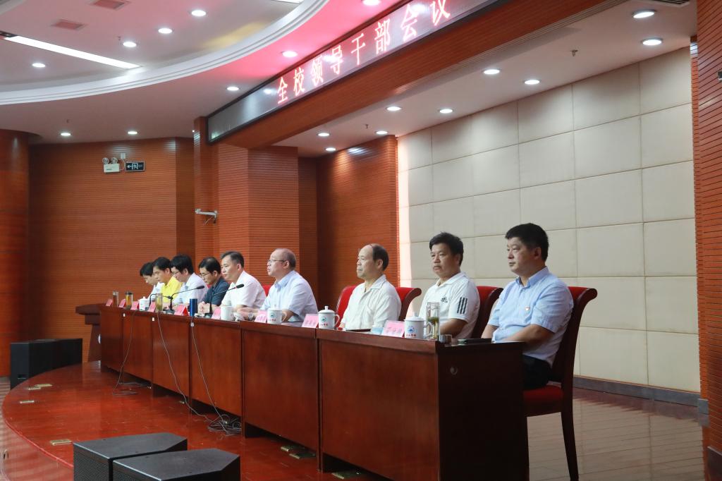 7月3日上午,学校在逸夫图书馆报告厅召开期末领导干部会议,对学校期末和暑假期间相关工作进行了部署安排。校党委书记赵伟,校长陈小林,副校长纪岗昌、王万山、陈春生、杨耀防、夏启国、查振华,党委委员王殿元、冯健、刘遵海出席会议。会议由校党委副书记魏立平主持。全校各部门和二级学院党政负责人参加会议。