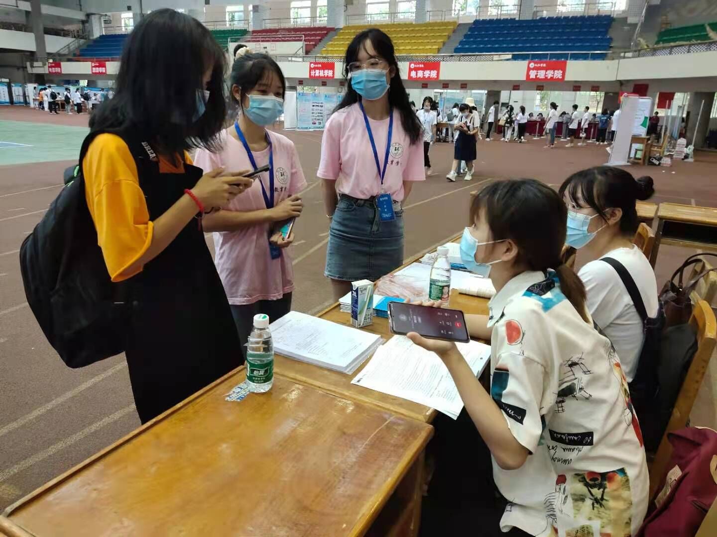 在迎新现场,学生资助管理中心提供热情周到的“一站式服务”,简化手续,“新长城九江学院自强社”成立迎新工作志愿服务队,针对资助政策详细解答新生和家长疑问,帮助家庭经济困难新生和家长及时办理各种手续。