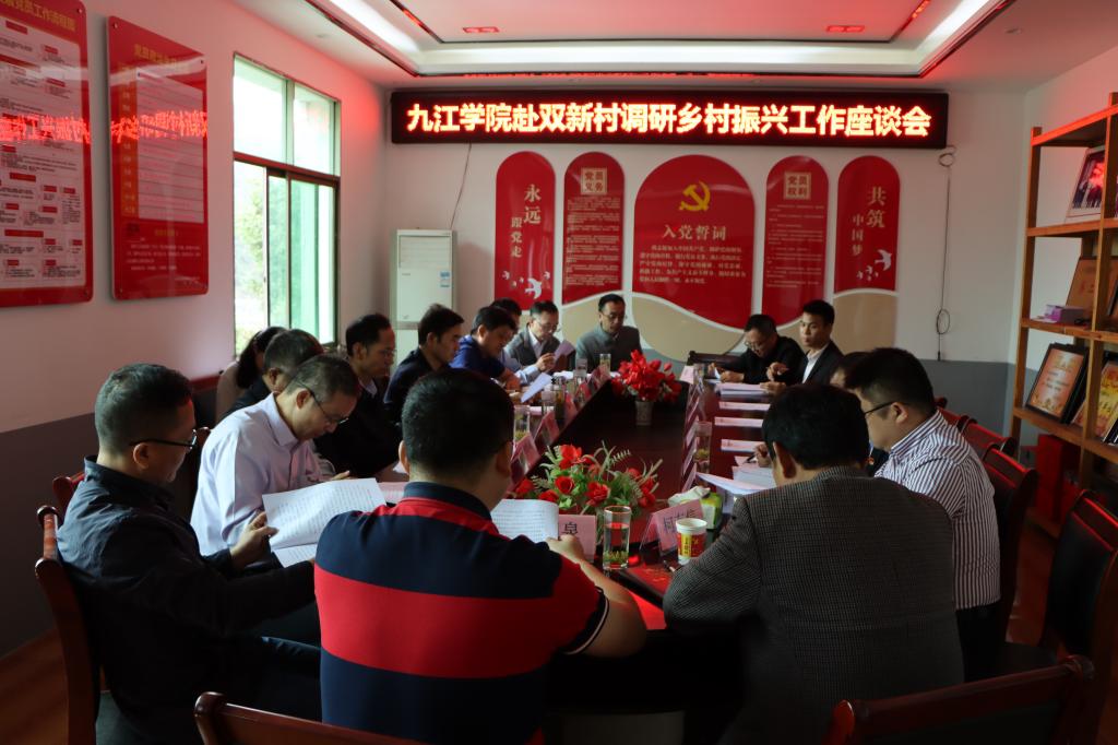 在调研座谈会上,魏立平作了讲话。他指出,党的十九大把乡村振兴战略作为国家战略提到党和政府工作的重要议事日程。学校党委高度重视,研究决定对武宁县鲁溪镇双新村派出乡村振兴驻村工作队。工作队全体同志要充分认识实现乡村振兴重大意义,全面把握乡村振兴的科学内涵,不负学校重托,克服困难、踏实工作、虚心向当地群众学习,充分发挥九江学院人才优势,把双新村乡村振兴各项工作落到实处、做出成绩,打造九江学院乡村振兴工作的示范点。要多方争取和沟通,用好用足乡村振兴的系列政策,以政策为导向,形成双新村乡村振兴工作具体方案。要大力弘扬脱贫攻坚精神,抓好巩固脱贫攻坚所取得的成果和乡村振兴的衔接工作。要发扬优良作风,高效推进乡村振兴方案,落实责任,念好山水经,从滨湖第一村到高山第一村,谱写乡村振兴的新篇章,描绘乡村振兴新蓝图。