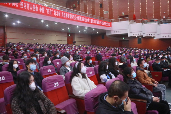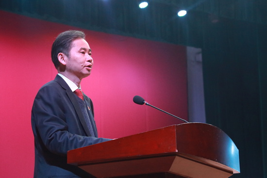 根据省委统一部署,12月7日下午,我校在主校区大礼堂举行学习贯彻党的十九届六中全会精神宣讲报告会,省委宣讲团成员、省工信厅党组书记、厅长杨贵平作宣讲报告。校党委书记赵伟主持报告会。在家校领导、正处级领导干部及教师、学生代表300余人聆听了宣讲报告。
