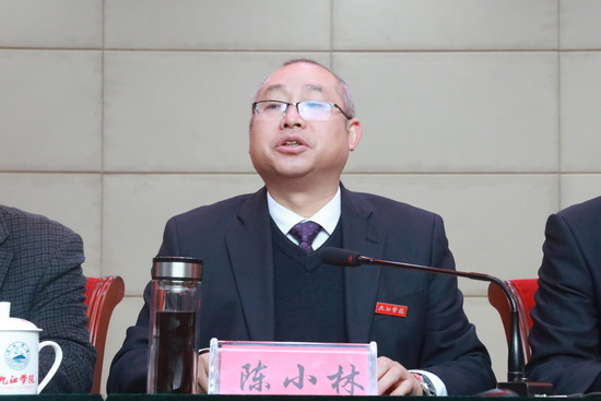 陈小林在主持开幕式时指出,科技是国家强盛之基,创新是民族进步之魂,实施创新驱动、科技强国战略是以习近平同志为核心的党中央作出的重大决策。在中国发明协会和九江市委、市政府的正确领导和帮助指导下,九江市发明学会一定能够在发掘和支持发明创造人才、增强社会创新活力、提高自主创新能力、创造发明创新成果等方面取得更大的发展和成绩。九江学院将持续坚持以服务地方为己任,积极推进产教融合和协同创新,加快建设应用大学建设步伐,为推进九江高质量发展作出新的更大贡献。
