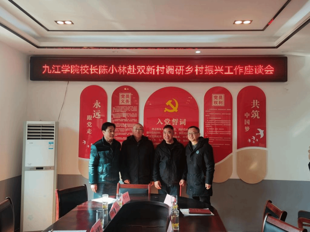 随后,陈小林围绕学校定点帮扶双新村谈了想法。他指出,九江学院高度重视对双新村的对口支援工作,力争做到全校动员、全面支持。自从7月20日学校驻村工作队入驻双新村起,全校各职能部门、二级学院积极做好对口帮扶工作,取得了初步的成效。下一步,我们将继续和双新村一起努力,争取调动各方资源和力量,让双新村产业更加兴旺、乡风更加文明,努力增加老百姓的获得感和幸福感。希望通过帮扶和各方努力帮助双新村建成乡村振兴示范点,谱写乡村振兴的新篇章。