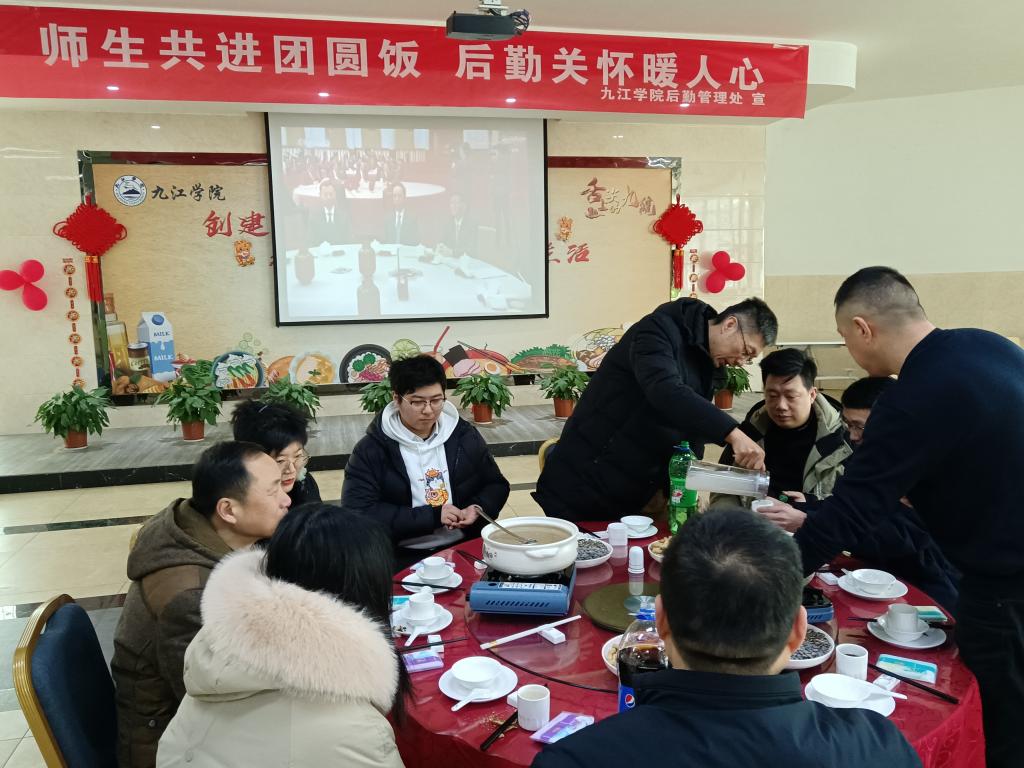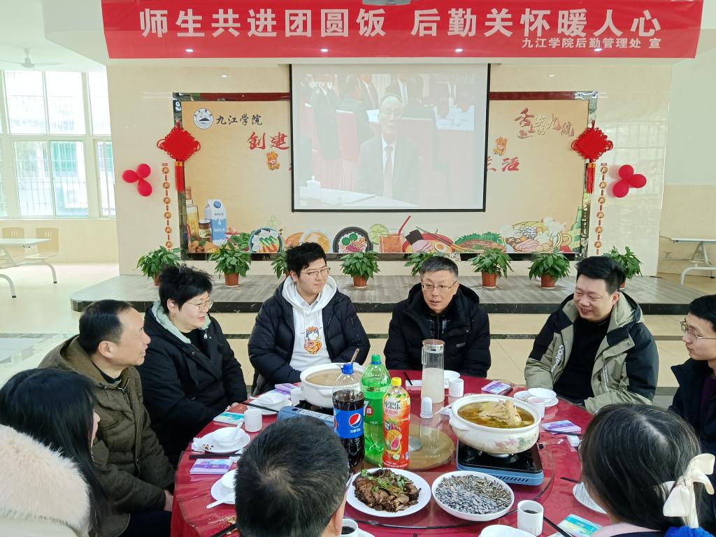 据了解,我校中、高风险地学生积极响应国家疫情防控需要,选择留校过年。尽管留校学生人数从最初的二十几人到除夕留在学校的只有四名同学,学校仍然非常重视,校党委赵伟书记要求各部门必须保障好留校学生能在九江学院过好这个春节,并于元月29日亲自到学生三食堂视察了后勤处为留校学生难备年夜饭的情况。除夕中午,万家团圆之际,为了让远在他乡的留校学生感受到学校的关怀和家一样的温暖,后勤管理处按照学极党委、行政的指示,精心准备了一顿团圆饭与留校学生共度虎年新春。事前饮食服务中心与学生多方沟通,将按照学生的家乡口味结合九江地域特色,专门制作一顿热勝腾地有情感的年夜饭。