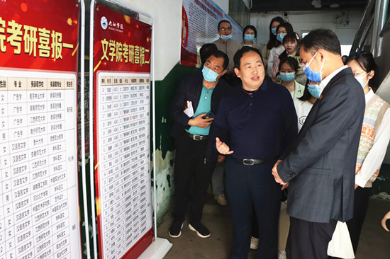 赵伟首先来到学生宿舍三栋,检查指导常态化校园疫情防控工作,慰问了疫情期间在宿舍值班的辅导员高丹阳老师和学生党员干部胡夏慧,看望了向学青年之家的备考学生,深入联系班级A1822班107和108宿舍开展座谈。学生代表、辅导员老师从青年学生的学习与思考、实践与成才、就业与规划等方面的情况进行了汇报交流。赵伟向青年学生致以节日的祝贺,对奋斗在疫情防控一线、为保障正常教科研秩序做出默默奉献的师生表示问候。班级宿舍座谈会上,赵伟认真倾听,就同学们关心的问题逐一解答指导,对考研顺利上岸的同学表示祝贺与祝愿,对选择就业的同学提出殷切鼓励,对选择考编考公的同学,分享了自己大学的奋斗和工作中的宝贵经验;鼓励大家牢记习近平总书记在中国人民大学考察时对青年大学生提出的希望,坚定不移听党话、跟党走,努力成长为堪当民族复兴重任的时代新人,坚定理想信念,坚守奋斗初心,找准自身定位,积极融入国家民族时代发展。