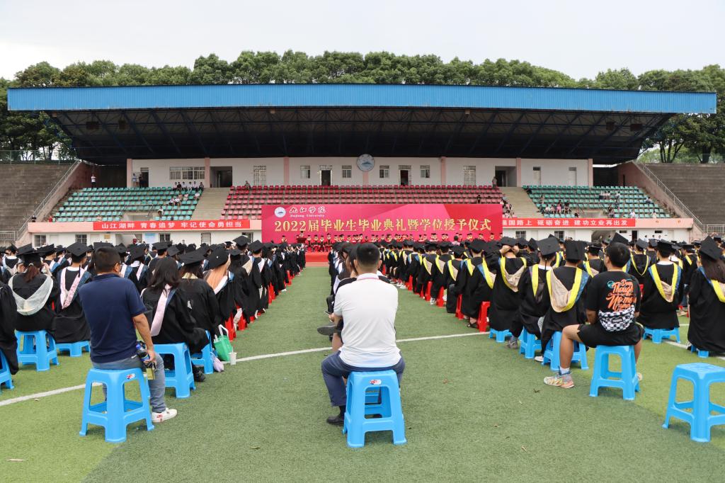 盛夏清和,芳草依依。6月28日上午8时许,我校在主校区南区田径场隆重举行2022届毕业生毕业典礼暨学位授予仪式。9060名毕业生在学校、师长和同学的见证下,在雨中依依挥别母校,带着母校和师长的嘱托和祝福踏上人生新征程。