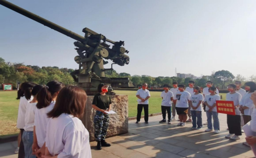 在学校西大门升旗广场,两尊舰炮威武挺立,每一次升旗仪式,每一次漫步路过,他们都仿佛在向人们诉说着那段壮烈的历史。“九江学院主校区在七十年代到八十年代是解放军某炮兵部队,九八抗洪也是驻军地之一……”外国语学院思政科科长江山正为2022级新生讲述《九江学院五星闪耀》的强军校史。在老师声情并茂的讲述中,新生们轻抚两尊舰炮,九江学院的历史犹如一幅缓缓开启的时间卷轴呈现在同学们眼前,成为了引导学生努力学习丰满羽翼、学有所成报效祖国的实景教材。