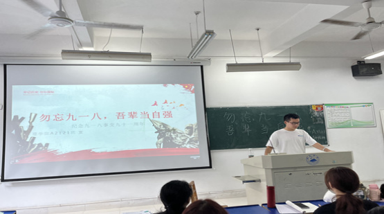 全国大学生挑战杯红色专项二等奖获得者姚思吟同学讲授了《勿忘九一八吾辈当自强》的微党课,带领学生回望“九一八”、铭记抗战史,分享了带领团队以九江红色资源为题,创作红色作品并获奖的心路历程。